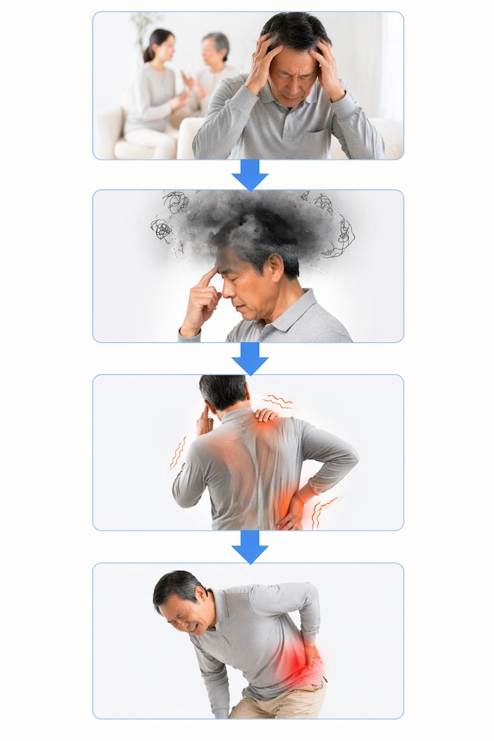ストレス=腰痛の原因ではないが、回復を妨げる要因にはなる