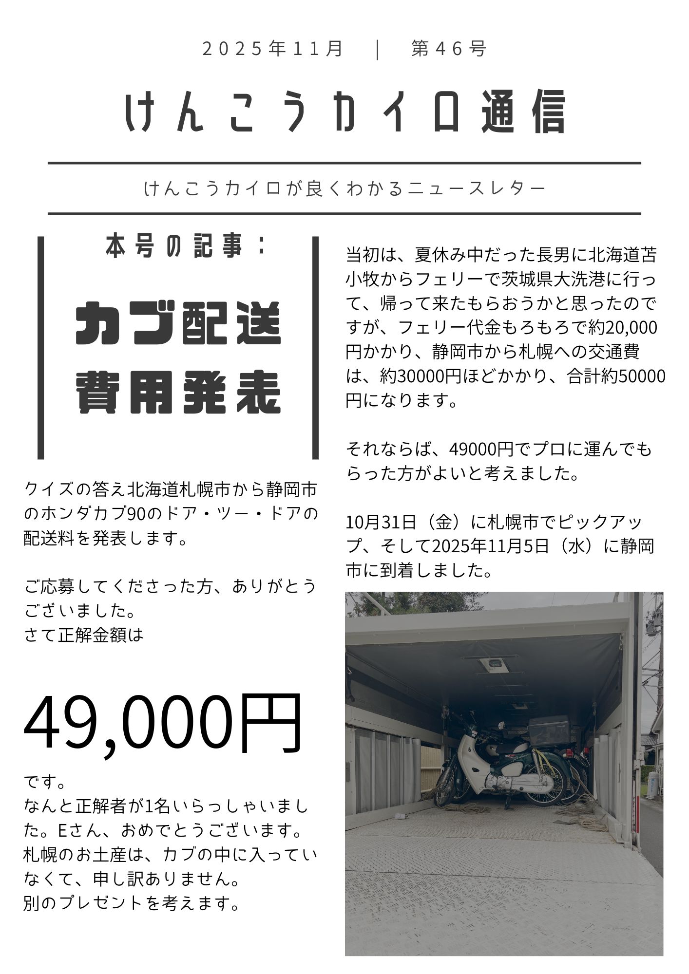 けんこうカイロニュースレター「札幌からバイクが到着編」 2025年11月6日配信46号