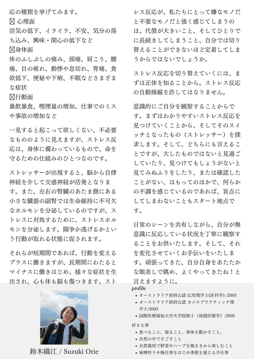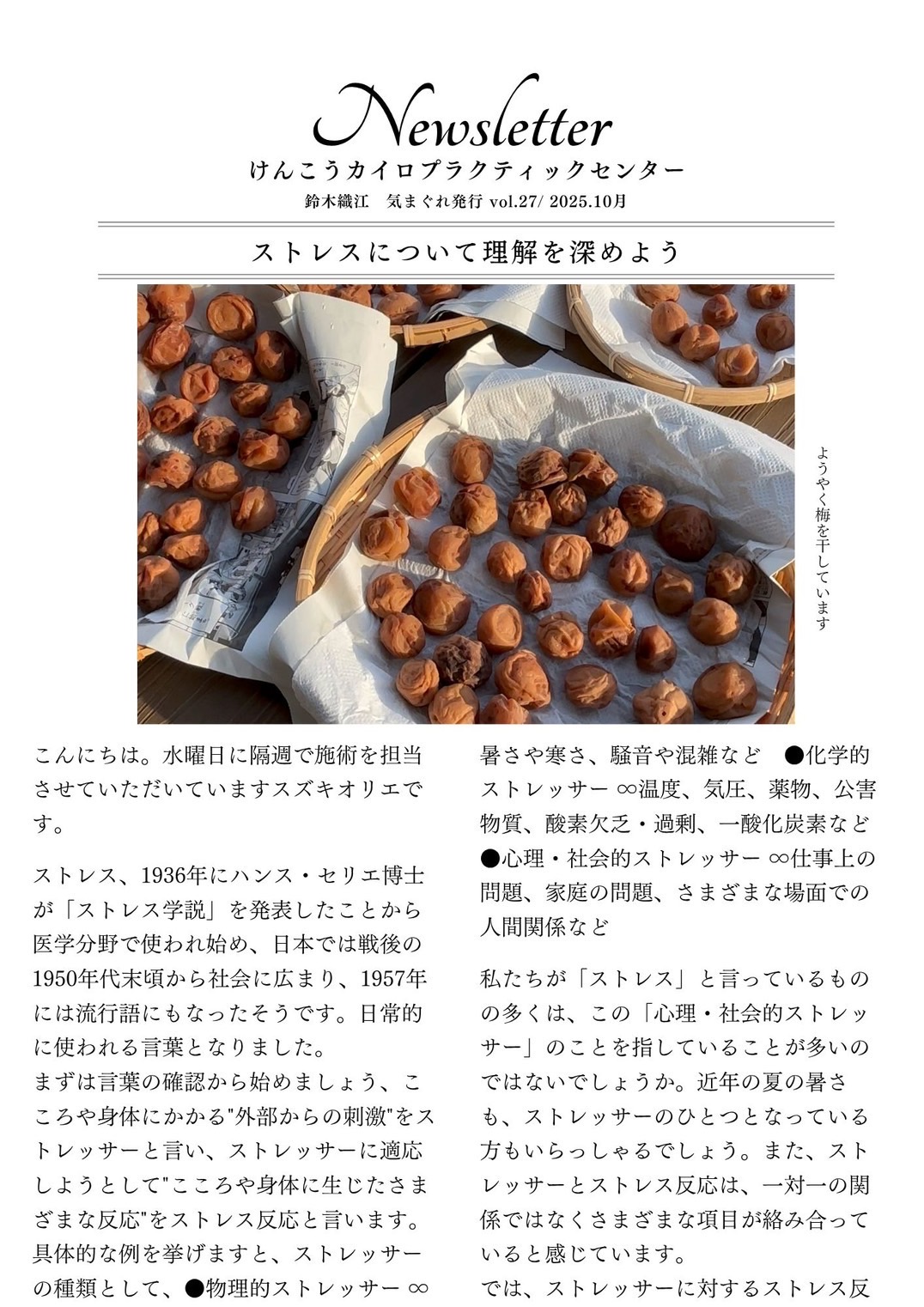 ニュースレター 鈴木織江 vol.27- 2025年10月7日発行 オリエ先生のニュースレターアップします おすすめの関連記事 ニュースレター 鈴木織江 vol.23- 2025年9月発行 2024年11月号 オリエ先生のニュースレター ニュースレター 鈴木織江 vol.13- 2025年3月発行 けんこうカイロニュースレター2025年3月17日発行VOL.21 ご予約・お問い合わせはこちら 054-221-0125タップで電話をかける LINEから予約お問合わせする 前の記事へ 所在地 当院までの道案内はこちら