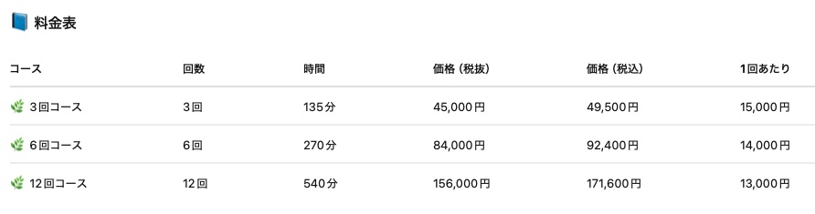156,000円+税(171,600円)/540分(45分×12回)(1回あたり 13,000円+税) 心・脳・身体を総合的に整える「根本改善プログラム」。呼吸・姿勢・感情が安定し、再発しにくい心身の状態をつくります。目的:根本回復・再発予防