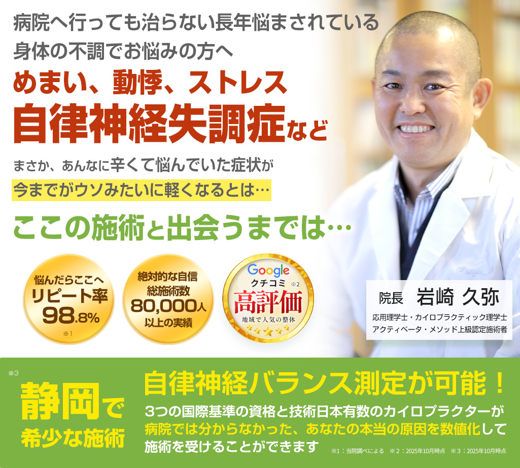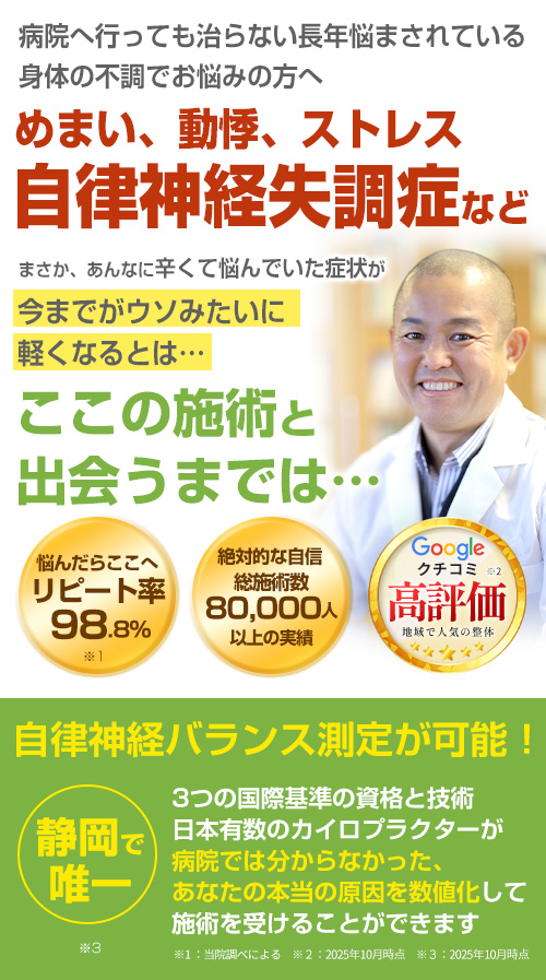 しかし、先生は私の症状を良く聞いて下さり、自律神経の事を詳しく教えて下さり、こんなに細かい所までわかってくれる方がいるんだなと気持ちも楽になりました。